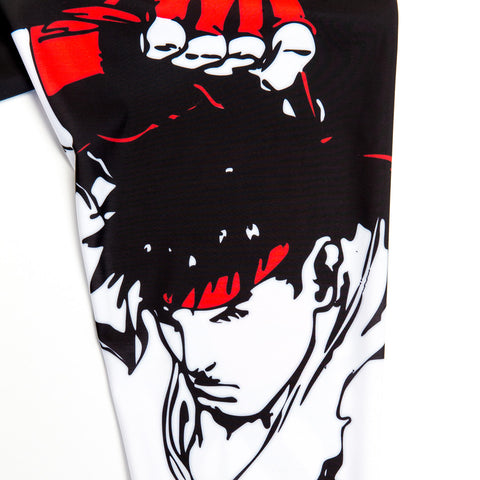Ryu is the iconic face of the Classic Street Fighter franchise, and is also the face of these officially licensed spats. He is pictured here tying up his red hachimaki, getting ready to lay down some beats.